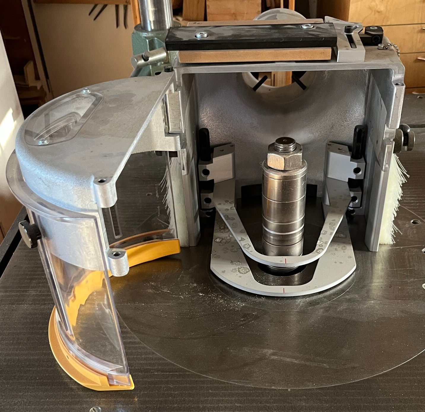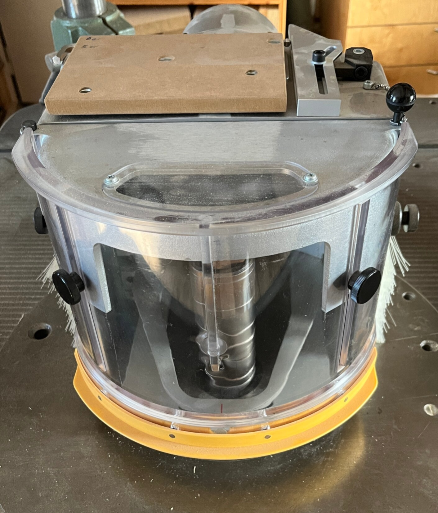 9534 Fräserabdeckung mit Haltestück +2 Schrauben M 8 x 12 mm inkl. Anfahrleiste mit anhebbarer Haube und Druckschuh